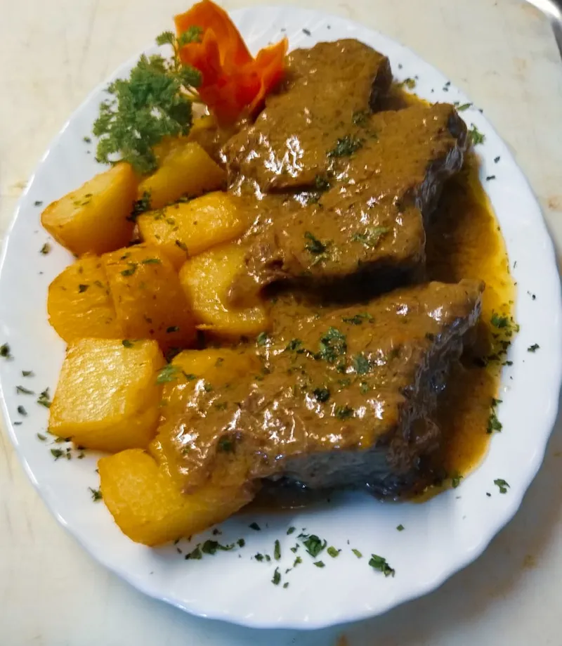 A tavern serving local cuisine, located in the city center, near the green market. The capacity of the facility is 30 seats indoors and 20 in the pleasant garden. We offer home-made dishes (offal dishes such as tripe in gravy, grilled intestines, breaded fried brain…) as well as grilled meat dishes and a la carte dishes. Free parking is available nearby.